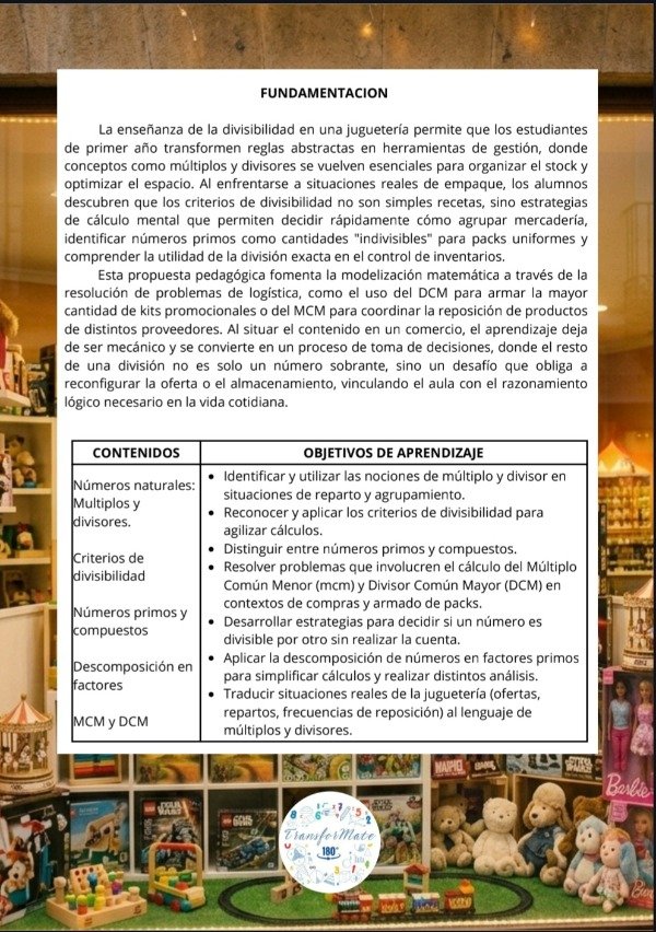 La enseñanza de la divisibilidad en una juguetería permite que los estudiantes de primer año transformen reglas abstractas en herramientas de gestión, donde conceptos como múltiplos y divisores se vuelven esenciales para organizar el stock y optimizar el espacio. Al enfrentarse a situaciones reales de empaque, los alumnos descubren que los criterios de divisibilidad no son simples recetas, sino estrategias de cálculo mental que permiten decidir rápidamente cómo agrupar mercadería, identificar números primos como cantidades "indivisibles" para packs uniformes y comprender la utilidad de la división exacta en el control de inventarios.