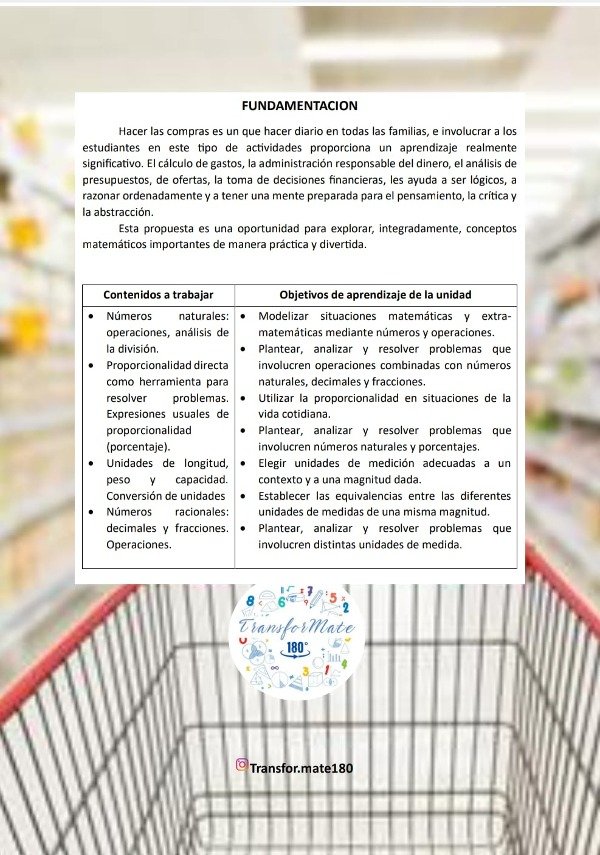 Hacer las compras es un que hacer diario en todas las familias, e involucrar a los estudiantes en este tipo de actividades proporciona un aprendizaje realmente significativo. El cálculo de gastos, la administración responsable del dinero, el análisis de presupuestos, de ofertas, la toma de decisiones financieras, les ayuda a ser lógicos, a razonar ordenadamente y a tener una mente preparada para el pensamiento, la crítica y la abstracción.