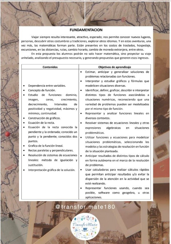En esta propuesta los alumnos podrán no solo hacer matemática, sino proyectar su viaje anhelado, analizando el presupuesto necesario, y generando propuestas que generen esos ingresos.